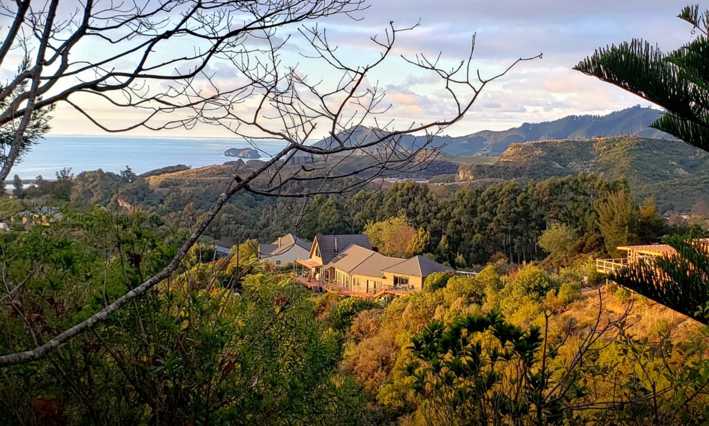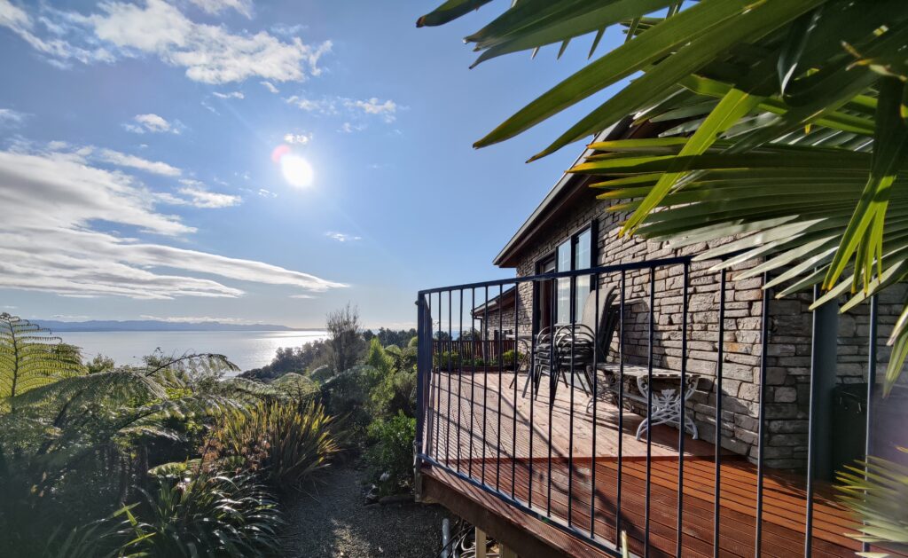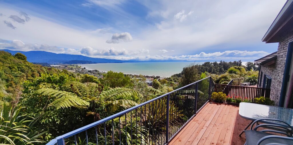 Our guests love our views across the Bay. Relaxing on the deck watching the sun go down over the sea with a glass of wine. Marvelling at the bright stars at night. Waking up to native bird song in the morning. They especially like the well set up and comfortable apartment, and our handy location to some of the best beaches and walks in the region.